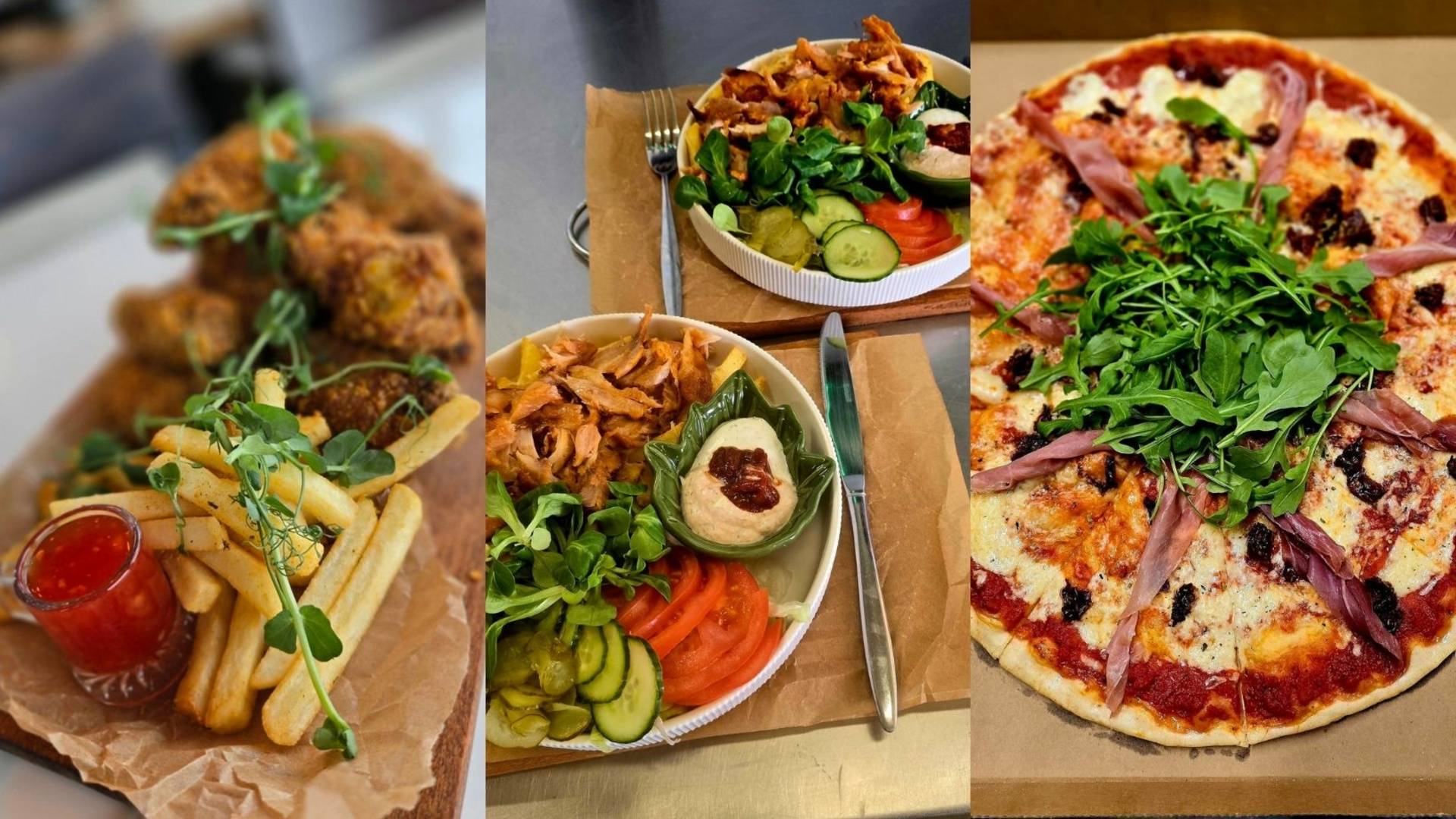 Picos, kebabai, kava, gaivieji gėrimai.